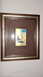 2 serigrafie su foglia d'oro zecchino del 1983, "Attesa" e "Marina", del pittore M.Rosati. Tiratura limitata a 500 copie. Certificazione come da foto. I 2 vetri all'interno presentano impercettibili opacità dovute agli anni.