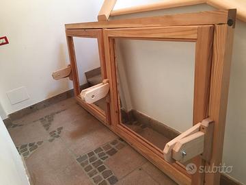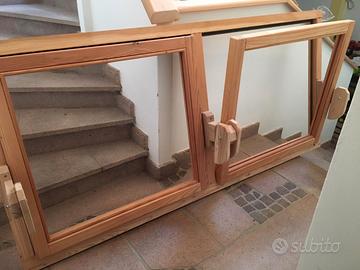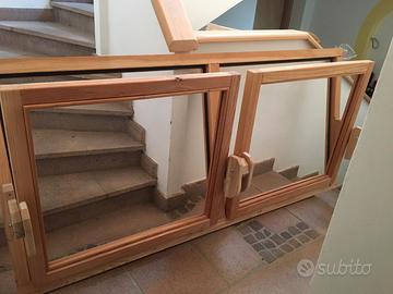 Finestre in legno massiccio di larice realizzati nuovi con tipologia rustica.