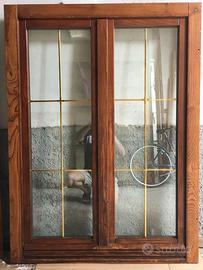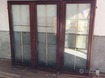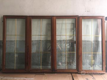 Finestre e porte finestre in castagno con doppi vetri e inglesina in ottone all'interno - complete di telaio e persiane in castagno