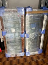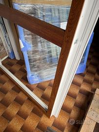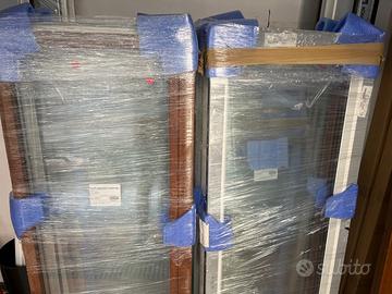 Serramenti in PVC Finestra 2 ante con sottoluce fisso H 955 Finitura interna colore Bianco Pellicolato Finitura esterna carter in alluminio effetto legno Misure esterno telaio Larghezza 1210 Altezza 2460 Ferramenta effetto Cromo Vetri Camera basso emissivo 4 stagioni Pz 2