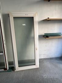 Vendo 2 serramenti in pvc ancora con pellicola protettiva 1 porta misura L66.7xH226 apertura a destra interna 1 finestra L79xH 170 apertura a sinistra interna entrambi 5 camere e doppio vetro colore interno beige ed esterno noce
