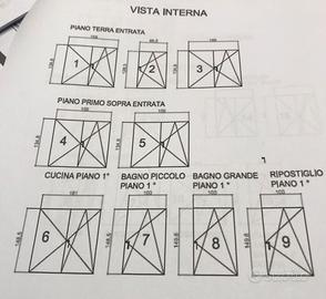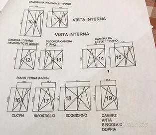 Vendesi n.18 telai finestre e n.1 porta finestra in ottimo stato in legno di abete comopleti di maniglie e cornici di varie misure. Le misure sono indicate nelle due ultime immagini. Ritiro e trasporto a carico dell’acquirente.solo interssati no perditempo.