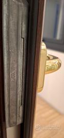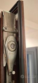 Per rinnovo esposizione, vendiamo serramento in alluminio Schuco apribile a 1 ante con ribalta, con sagome tipo legno e colore legno noce scuro, maniglia Hoppe , isolato termicamente e acusticamente si può montare sia come serramento che come divisorio interno.
