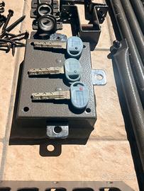 🔒 Serratura di sicurezza Mottura completa per porta blindata / cancello Vendo serratura originale Mottura Made in Italy, completa di tutti gli accessori per il montaggio. ✅ Contenuto del kit: •Serratura principale Mottura •Scatola porta cilindro con 3 chiavi originali •Aste/aste telescopiche in metallo (chiusura multipunto) •Supporti e staffe di fissaggio •Boccole guida per aste •Piastra di copertura •Viteria completa 📌 Caratteristiche: •Sistema di chiusura multipunto (alta sicurezza) •Struttura robusta in acciaio •Ideale per porta blindata, cancello o porta rinforzata •Prodotto affidabile e di qualità italiana 📏 Condizioni: •Usato ma in buone condizioni •Smontato funzionante •Completo e pronto per essere reinstallato 📦 Spedizione disponibile in tutta Italia con corriere (costo a parte o incluso da concordare) 🤝 Ritiro a mano disponibile in zona