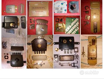 "Vendo, come da foto (non esaustive), varie serrature da applicare a ferroglietto, con e senza cilindro, tutte col pomolo interno. Scatola e bocchetta in acciaio, colori e numero chiavi come da foto. Usate, ma funzionanti. Euro 17 col cilindro, e 12 senza.