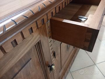 cedo da magazzino questo splendido servante interamente in noce nazionale massello, mobile artigianale di falegnameria finemente scolpito a mano. misure 240 centimetri lungo, 90 centimetri alto e 60 centimetri profondo.