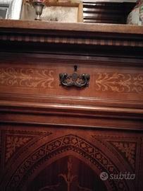 Servante in noce e intarsi fine 800, conservata perfettamente; due ante misure 138x110x58cm (disponibile identica ma a tre ante misure 210x110x64cm)