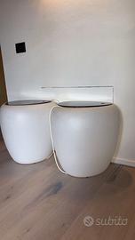 Innovativo tanto nel design che nell’uso del polietilene, Ios vive delle sue varianti di colore nel piano in plexiglass o legno, e nella versione con vano porta-bottiglie; la luce interna lo rende un oggetto ancor più vivo e futuristico, degno di un arredo libero da schemi e davvero di stile. Nasce come un complemento d'arredo, semplice tavolino, e si evolve nella versione luminosa per regalarci una vera opera di design all'avanguardia. Ios portabottiglie con kit luce è realizzato in polietilene e top in plexiglass nelle finiture trasparente e grigio fumè trasparente. Vendo a coppia usato come in foto