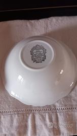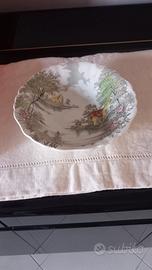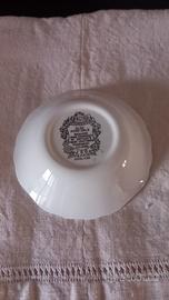 Raffinata ceramica inglese Olde Avon Dale dai colori unici, corredato da grande cucchiaio e sei cucchiaini . Due delle sei coppette hanno setole impercettibili sul fondo dovute al tempo.