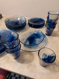 Servito di piatti in vetro azzurro