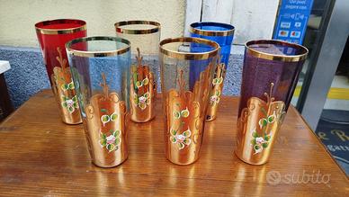 Set sei bicchieri vetro di Murano vintage. Ottimo stato. Misure 16 x 7 cm..