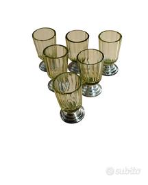 Gruppo sei bicchierini antichi da rosolio cristallo e argento . Misure 7 x 4 cm