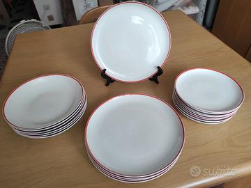 Vendo n° 6 piatti fondi + n° 5 piatti piani + n° 8 piatti frutta in porcellana con filo rosso : € 14;