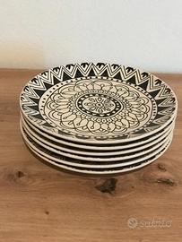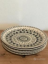 Servizio di 17 piatti con motivi etnici, marca Kasanova, lavabili in lavastoviglie: