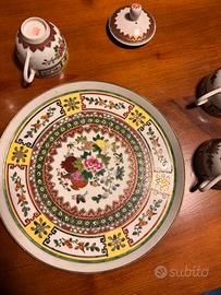 Servizio 4 tazze caffè ampie o da tè con caffettiera e piatto colorato a mano in porcellana cinese. Qualitá elevata.