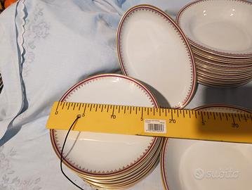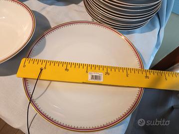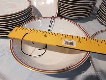 Servizio di piatti in porcellana fine di Boemia-H&C Propongo in vendita un raffinato servizio di piatti in porcellana fine di Boemia, marchiato H&C, realizzato nel secondo Novecento secondo la tradizione ceramica boema. Il servizio è composto da 42 pezzi!!! per 12 persone ed è caratterizzato da una decorazione classica e armoniosa, con filetto rosa e profili in oro, sobria ed equilibrata, adatta a una tavola di rappresentanza e a contesti di gusto tradizionale. Composizione del servizio: 12 piatti piani 12 piatti fondi 12 piatti dessert 2 piatto ovale da portata(grande) 1 piatto ovale da portata(piccolo) 1 piatto grande 1 zuppiera con coperchio (La zuppiera presenta una piccola crepatura) 1 piatto Grande per insalata Il servizio si presenta in condizioni eccellenti perfettamente conservato, completo e omogeneo con smalto brillante e decorazioni integre Una proposta di qualità, ideale per chi apprezza la porcellana boema classica, sia per l'uso che per la collezione o l'arredo prezzo richiesto: 450E Buon Affare!!! Vendita solo in blocco Ulteriori informazioni su richiesta. messaggi su WhatsApp: 3381367070 Lina