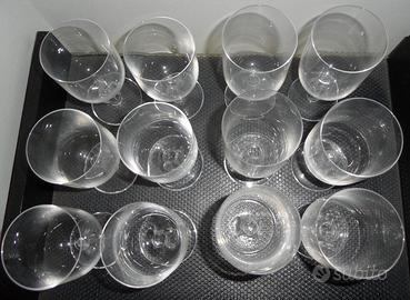 Set/servizio di 6 bicchieri da acqua + 6 bicchieri da vino con gambo lavorato.