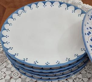 Si vende servizio di 6 pregiati piatti in ceramica sarda bianco e azzurro, diametro 34 cm realizzati dall'artigiana di Assemini Doriana Usai, 1 piatto decorato con le pavoncelle, euro 90. NON TRATTABILE Lasciare messaggio con numero telefonico