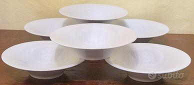 Servizio composto da 6 Piatti fondi in Porcellana marcati Alessi, Design Toyo Ito 2006. Misure : diametro 21,5 cm x