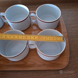 Servizio 6 tazze in porcellana Real Tognana made in Italy bianche con un delicato bordino marrone che le rende eleganti e raffinate (Il vassoio e gli accessori marroni nella foto NON sono inclusi nella vendita, sono solo a scopo illustrativo)