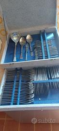 Servizio posate AMC da 72 pezzi più 4 posate di Servizio, non ci sono cucchiai da tavola ma 24 forchette . Le posate sono nuove ma l'astuccio è un pò usurato,