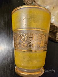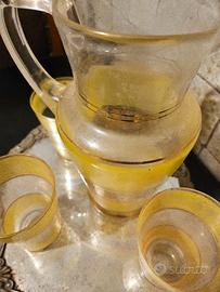 servizio bevande giallo con disegni ,boccale e quattro bicchieri;