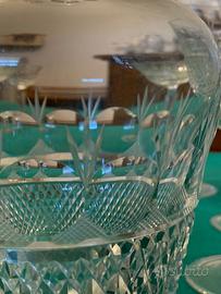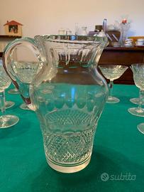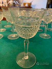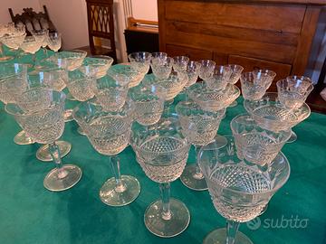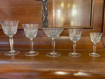 bellissimo e integro servizio di bicchieri in cristallo lavorati a mano, periodo anni 50 acquistati da Poggi a Firenze, e mai utilizzati. Il servizio comprende 34 pezzi così suddivisi: 6 acqua, 6 vino, 6 coppe, 6 liquore, 6 elisir, 2 caraffe, 2 bottiglie con tappo. Solo ritiro di persona, NON spedisco i cristalli.
