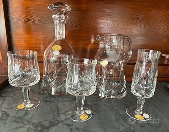 Come da titolo vendo pregiato servizio di bicchieri di cristallo Boemia intagliato a mano. Mai usato con bollini originali.