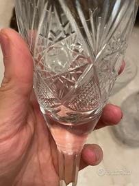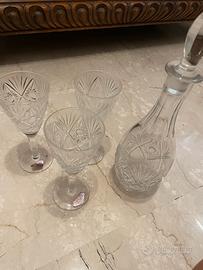 Dodici bicchieri di cristallo d’epoca più la relativa brocca, anni ‘50. Cristallo molto pesante. Ottime condizioni. Consegna a mano su Roma.