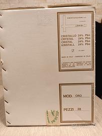 Servizio di bicchieri in cristallo disegnato da Marcello Aglieri, Italia anni '70-'80. Bellissimo servizio di bicchieri in cristallo di alta qualità, lavorato a mano, con oltre il 24% di piombo che gli conferisce una brillantezza eccezionale, completo per 12 persone. Bellissimo il design classico per una tavola elegante, con il cristallo che forma modulazioni al suo interno che gli conferiscono eleganza ed esclusività, e che mettono in risalto l'alta qualità del cristallo e la sua splendida lucentezza, inoltre è molto sonoro al tatto. Il servizio è nuovo, ma di antica manifattura, perfetto, MAI USATO, conservato con cura in confezione originale come da foto, porta la firma del designer su OGNI bicchiere e ha ancora le sue etichette originali. Inoltre, i pezzi antichi sono realizzati con materiali e processi di alta qualità rispetto a quelli moderni, che sono molto più commerciali. Il servizio è composto da 12 bicchieri acqua, 12 vino, 12 flute 1 brocca acqua 1 decanter vino.