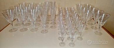Servizio bicchieri a calice in fine Cristallo composto da 50 pezzi coordinati con intagli sul vetro. Perfetto per un Ricevimento, Matrimonio o festa per farti ricordare e presentare una tavola principesca... Il servizio è composta da: