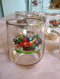 Servizio bicchieri e bottiglia vintage Grazioso servizio vintage, anni 60', composto da 6 bicchieri e bottiglia decorati come da fotografia.