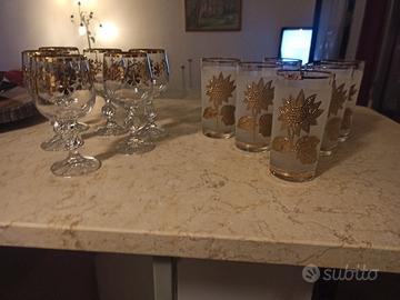 Servizio Bicchieri e Calici Vintage in Vetro con Dettagli Oro (12 Pezzi) - Stile Anni '60/'70