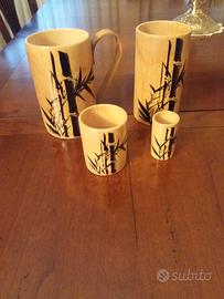 Servizio in bambù bicchieri bibita,birra e liquori vari, vassoio, mai usato, 24 pezzi più vassoio.