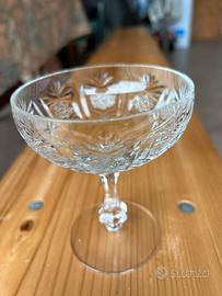 Sercizio di 6/12 pezzi composto da bicchieri vino, acqua e coppa in cristallo pregiato lavorato a mano. Vendo anche i singoli pezzi e prezzo esposto per bicchiere.
