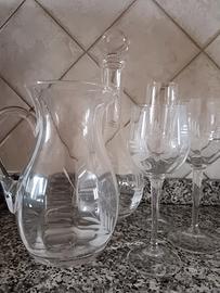Servizio da 12, in cristallo lavorato a mano, con una brocca acqua, una brocca vino, 12 bicchieri da champagne, 12 bicchieri acqua, 12 bicchieri vino