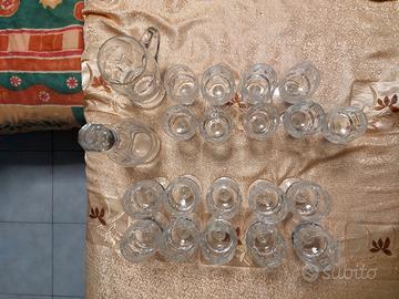 Servizio di bicchieri in vetro resistente. 10 bicchieri da acqua 9 bicchieri da vino 1 bottiglia 1 caraffa