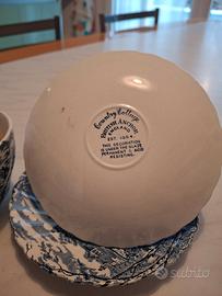 Servizio caffe' stile inglese, da 6 tazzine e relativi piattini, porcellana fine disegnata con paesaggi inglesi, decorazione permanente e acido resistente, raffinato e molto datato, marchio Country Cottage British Anchor England, per veri intenditori.