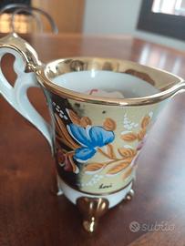 Servizio caffè da 12 completo di caffettiera,zuccheriera,e bricco latte. R. Capidimonte G V ogni pezzo è firmato Dal decoratore "Lori" decorazioni floreali, interni bordi , piedini e manici dorati. Non è mai stato utilizzato.