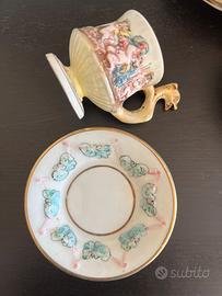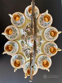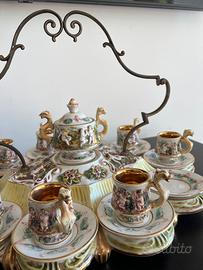 Servizio da caffè Capodimonte per 10 persone. Composto da 10 tazzine con interno in oro, piattino, zuccheriera e vassoio da portata.