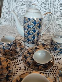 servizio da caffè 8 PZ completo di caffettiera, lattiera e zuccheriera in fine porcellana giapponese.