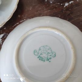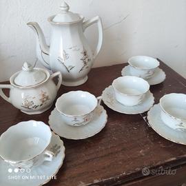 Elegante servizio da caffè vintage in fine porcellana lucida con tipico marchio "Japan Foreign " anni 30 composto da 12 tazzine,12 piattini smerlati, una zuccheriera e una caffetteria.