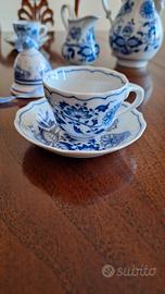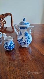 Hutschenreuther - Germania - Porcellana cipolla blu - bellissimo servizio 8 tazze da caffè con piattino, bricco caffè, bricco latte e zuccheriera. Ritiro Roma Sud