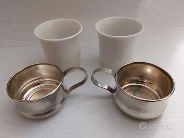 servizio caffè per 2 in silver plate formato da : . vassoio . 2 tazze in ceramica con portatazza in silver plate . zuccheriera