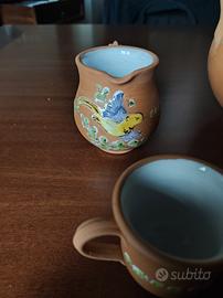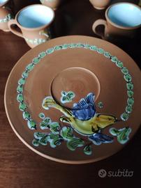 grazioso servizio da caffè in terracotta decorata l'articolo è composto da caffettiera zuccheriera lattiera sei tazzine e relativi piattini