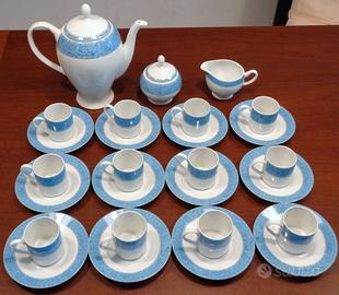 Il servizio è costituito da 29 pezzi con fasce decorative costituite da delicatissimi disegni floreali nei toni dell’azzurro.