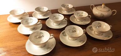 servizio da caffè in finissima porcellana Mitterteich Bavaria anni 30-40 mod. Graziella composto da 9 tazzine, 9 piattini e zuccheriera. In perfette condizioni