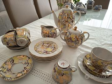 Servizio da caffè per 6 persone della famosa fabbrica di porcellana russa Lomonosov. Trio: tazzina da caffè con sotto tazzina e piattino da biscotti. Più caffettiera, zuccheriera e lattiera. Manca un piattino sotto tazzina. Forma tulipano. Fantasia “Margherita dorata” (Daisy gold). Anni 70. Non più in produzione da marzo 2018. Non spedisco. Valuto consegna personalmente