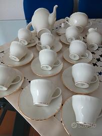 Splendido Servizio da CAFFE ,avorio , in porcellana TOP, "Richard Ginori "vintage ,Composto di 10 Tazzine e Piattini , una Caffettiera. una Lattiera. una Zuccheriera . Tutto mai usati ,marchiati singolarmente ,bordi dorati integri .vendo a prezzo simbolico di 120 euro .