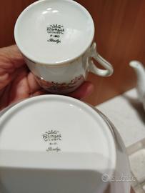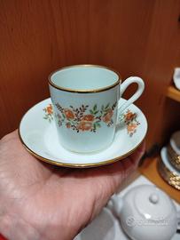 Servizio da caffè motivo floreale e bordi in oro zecchino vintage, anni 80